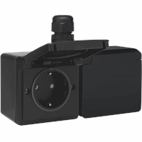 Nom. stroom: 16.0a, Nom. spanning: 250.0v, Montagewijze: opbouw (stucwerk), Kleur: zwart, Uitvoering: randaarde (type f), Halogeenvrij, Uitvoeringsvorm afdekking: volle afdekplaat, 2 eenheden, Met klapdeksel, Aansluitwijze: steekklem