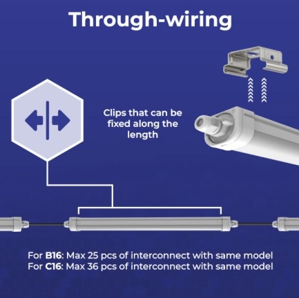 Waterdicht ledarmatuur geschikt voor doorlussen. 2600 lumen met CCT switch.
