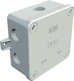 OBO b 9 kabeldoos enkel, duroplast, lichtgrijs, (lxbxd) 94x94x34mm, hoogte 45mm, type behuizingsdoorvoer wartel/membraam, met wartel, opbouw, 7 invoeren, halogeenvrij, met deksel, dekselbevestiging geschroefd, nom. isolatiespanning uitgang 660v, beschermingsgraad (ip) ip54
