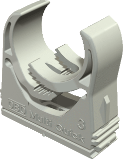 OBO quick m kabel-/buisklem, kunststof, grijs, geschikt voor buisdiameter 25 - 28.5mm, koppelbaar, max. aantal kabel/buizen 1, soort bevestiging schroef, halogeenvrij