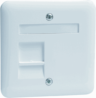 Peha standaard outlet-component, kunststof, wit, samenstelling centraalplaat, gebruik modular-jack, met stofbescherming, opdrukveld met label, inbouw, kwaliteitsklasse thermoplast, halogeenvrij, oppervlaktebescherming geen (onbehandeld), uitvoering oppervlakte glanzend, ral-nummer 9010