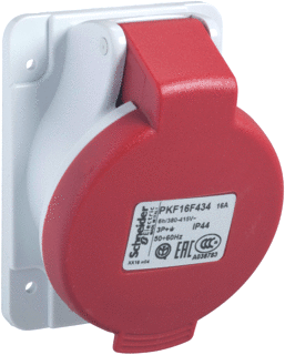 Uitvoering inbouw, IEC-stroomsterkte 16 a, Aantal polen 5, Spanning volgens EN 60309-2 380 - 415 v (50 hz / 60 h, Uurstand 6 h, Kenkleur rood, Beschermingsgraad (IP) ip44, Aansluittechniek schroefklem, Materiaal kunststof, Bevestigingswijze buitenbevestiging, Afschakelbaar n.v.t., Flensmaat 90 x 100 mm