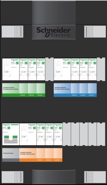 Deze Schneider electric groepenkasten geassembleerd bestaat uit de volgende componenten: