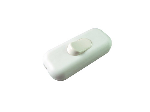 Snoerschakelaar wit 1-polig. Kabel mag doormidden geknipt worden. De schakelaar heeft een schroefbevestiging voor de draad (2x0,75mm2) Het onderstuk wordt door middel van 2 schroeven vastgezet aan de bovenkant.