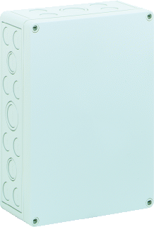 Lege behuizing, Bodem en deksel: polystyreen, grijs, overeenkomstig RAL 7035, Beschermingsgraad IP66, met Beschermingsgraad IK07, Beschermingsniveau II, doorslagspanning Ui 690VAC/DC, Ui=1000VDC, Halogeenvrij, 254 x 180 x 90, met metrische voorstansingen