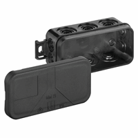 Montagewijze: wand-/plafondmontage, Kleur: zwart, Breedte: 89.0mm, Halogeenvrij, Diepte: 43.0mm, Vorm: rechthoekig, Oppervlaktebescherming: geen (onbehandeld), Uitgerust met: geen, Nom. isolatiespanning ui: 400.0v, Lengte: 37.0mm