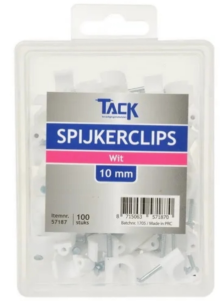 Spijkerclip wit 10mm doos 100 stuks